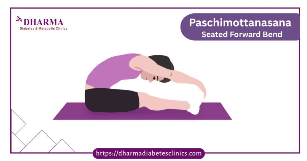 - Targeted Benefit for Diabetes: As a deep forward bend, this pose massages the abdominal organs and helps calm the nervous system, drastically lowering stress. Lowering stress is crucial for using yoga to reduce blood sugar naturally. It also stretches the entire spine and hamstrings.