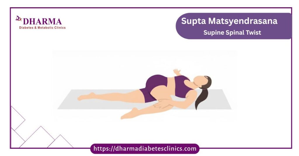 - Targeted Benefit for Diabetes: This is a gentle, final twisting pose performed lying down. It promotes internal organ detoxification, boosts digestion, and helps improve circulation, aiding overall metabolic function. This pose helps calm the nervous system before Shavasana, ensuring deep relaxation.